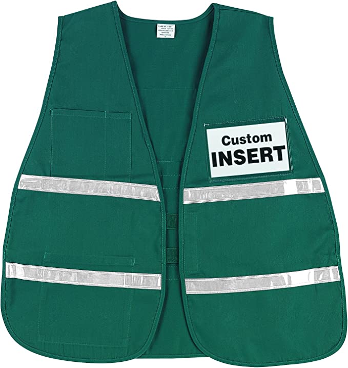 Green Incident Command Safety Vest Polyester Cotton Fabric 1 Inch White Reflective Stripes