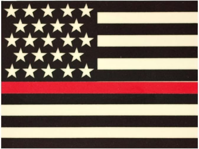 4" American Flag, Subdued with Thin Red Line. The Thin Red Line is a way to honor the fallen heroes of the Fire Departments across the US and the rest of the world. This flag is reflective and glows bright in the dark